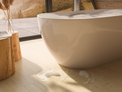 Nhờ công nghệ tiên tiến, bề mặt sàn được phủ lớp nhựa resin cao cấp, giúp sàn chống nước 100%, lý tưởng cho cả phòng tắm và nhà bếp. Điều này cho phép tạo nên thiết kế đồng bộ cho toàn bộ ngôi nhà hoặc căn hộ, đồng thời vẫn tận hưởng trọn vẹn vẻ đẹp và tính linh hoạt của sàn artureon.